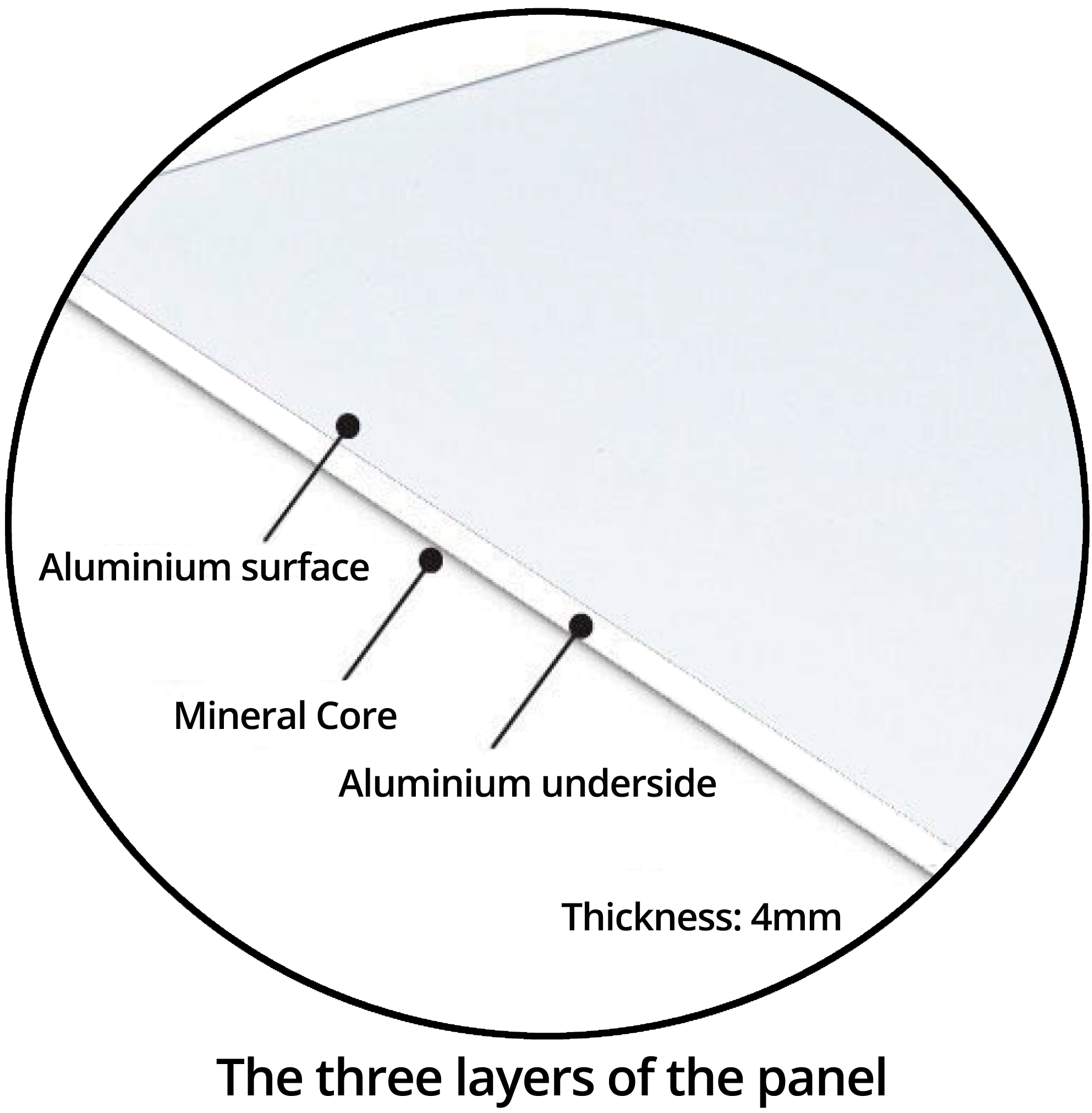 Kobert-In panels have a thickness of 4mm and come in 49 in x 96 in sheets. We can customize any smaller size you want. We always 3D scan 5 different pieces of marble or stone pattern, etc. to create the most natural looking design. They have a fire rating of Bs1D0 and a very high scratch resistance.