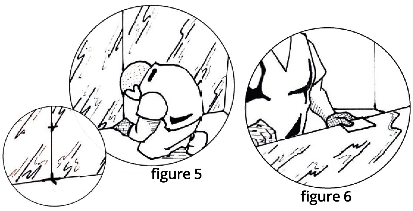 Place the panel against the wall with the adhesive side toward the wall. The adhesive will allow you to make positioning adjustments for 15-20 minutes. This time varies based of the humidity within the room where it is being installed. High humidity reduces the time and low humidity increases the time. (figure 4)